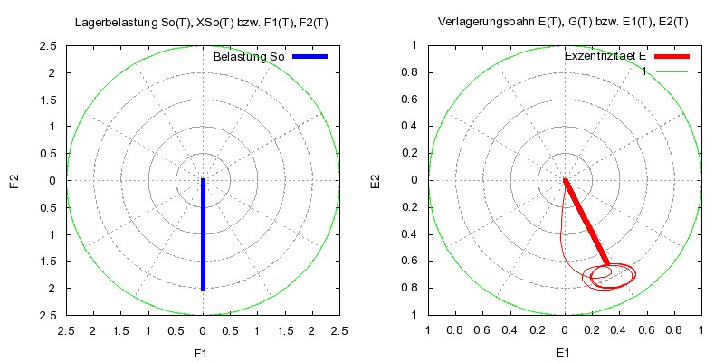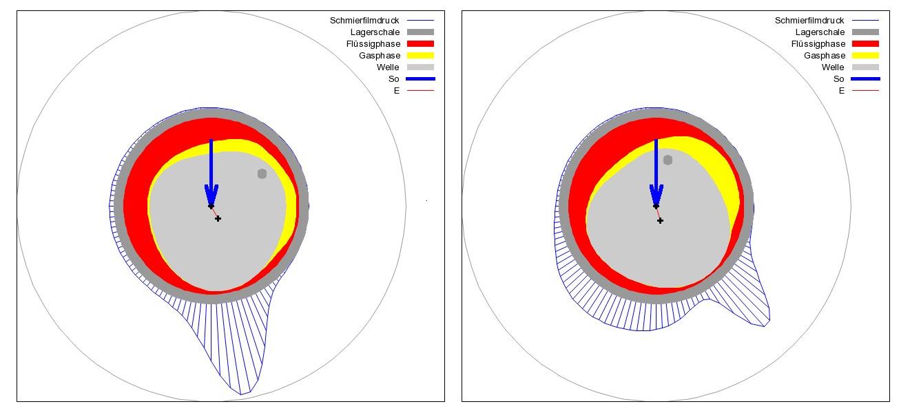 Obwohl die Lagerbelastung mit So=2 konstant ist, ist die Druckentwicklung im Schmierspalt instationär und es entwickelt sich eine Verlagerungsbahn gemäß Bild 8, rechts, die pro Umdrehung drei mal durchlaufen wird.