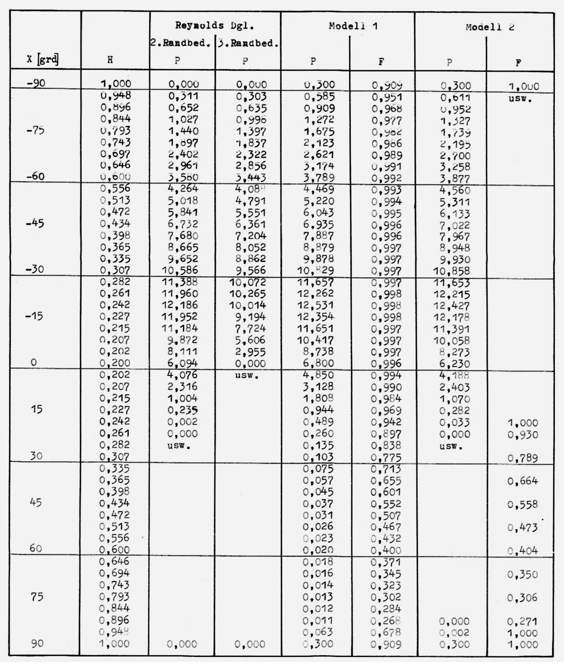 Tafel 2: Stationär belastetes, unendlich breites, halbumschlossenes Gleitlager