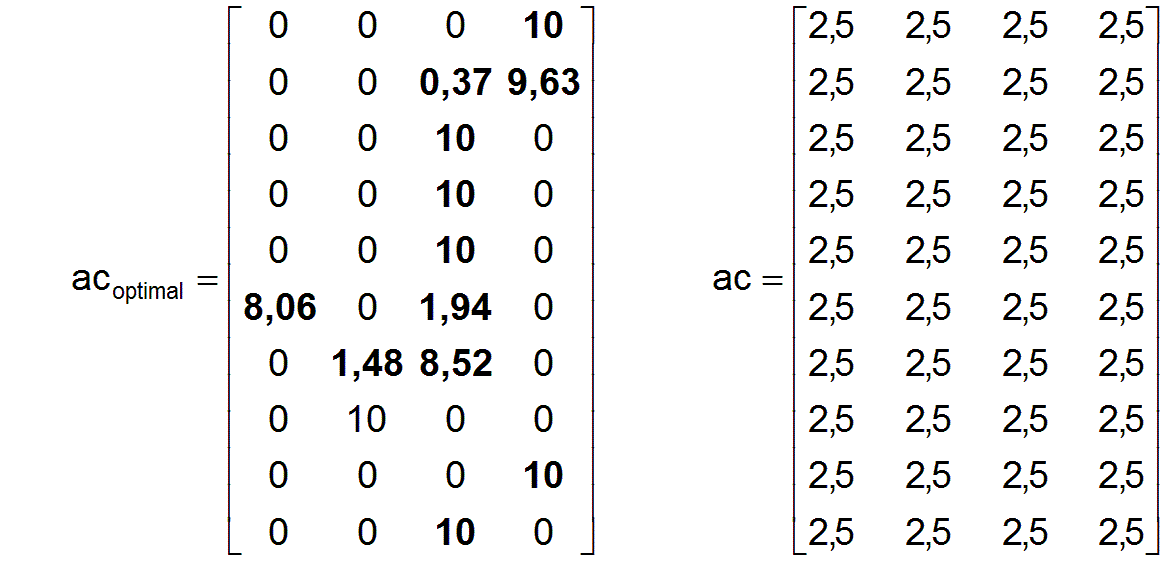 Die optimale Beschäftigungsmatrix acoptimal hat die Werte