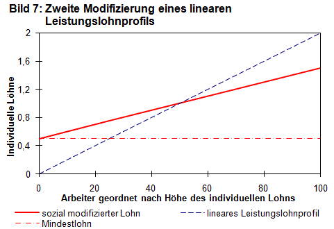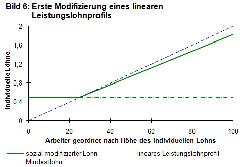 Dementsprechend ist das bisher modellierte Lohnsystem noch nicht sozial verträglich. Es ist also zu überlegen, wie dieses Lohnsystem modifiziert werden kann, ohne daß dabei die Leistungsorientierung verloren geht.