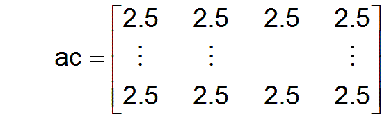 Now an employment matrix which is not supposed to be optimal yet, but is determined arbitrarily shall be given. As an easy example, every productivity group should be included in equal proportions in every profession in the beginning. And the number of employees in every profession should also be the same. Thus in the beginning the employment matrix ac is given by