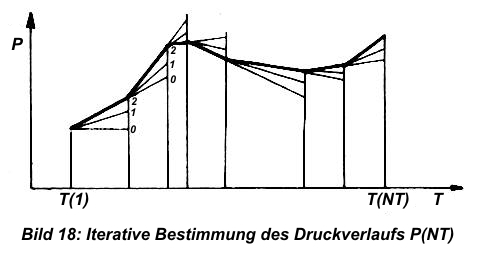 Dieses Lösungsverfahren wird, beginnend bei einer vorgegebenen Anfangsdruckvorteilung P(X,Z) zum Zeitpunkt T(1), über NT-1 Zeitschritte ausgeführt (Bild 18).