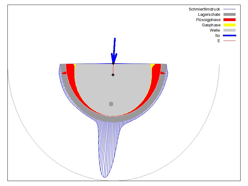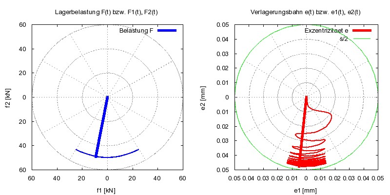 Bild 1 zeigt die Verlagerungsbahn des Gelenkzapfens beim Einschwingen beginnend bei einer konzentrischen Anfangsposition. Die minimale Spalthöhe pendelt sich bei ca. 0,002 mm ein. Hier können wir dann sicher schon von Mischreibung reden, bei der mit Verschleiß zu rechnen ist.