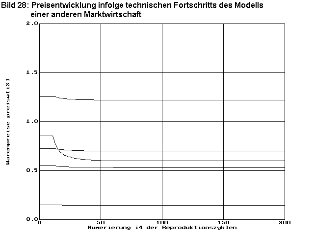 Bild 28 zeigt wieder die Entwicklung der Warenpreise. Die Konvergenz ist sehr gut. Das Optimum ist nach ca. 40 Zyklen erreicht.